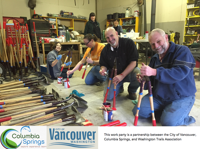 Our Southwest Tool Party is a collaboration between WTA and Columbia Springs. We will all work together to clean, paint, sharpen, and fix our combined tools.